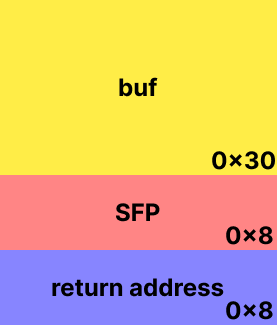 그런데 scanf는 크기를 얼마나 받을 지 정해놓지 않았기때문에 buf에 0x30보다 많이 넣으면 오버플로우가 일어난다.