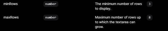 | maxRows={30}: textarea에서 텍스트 초과 시 연장되는 길이.