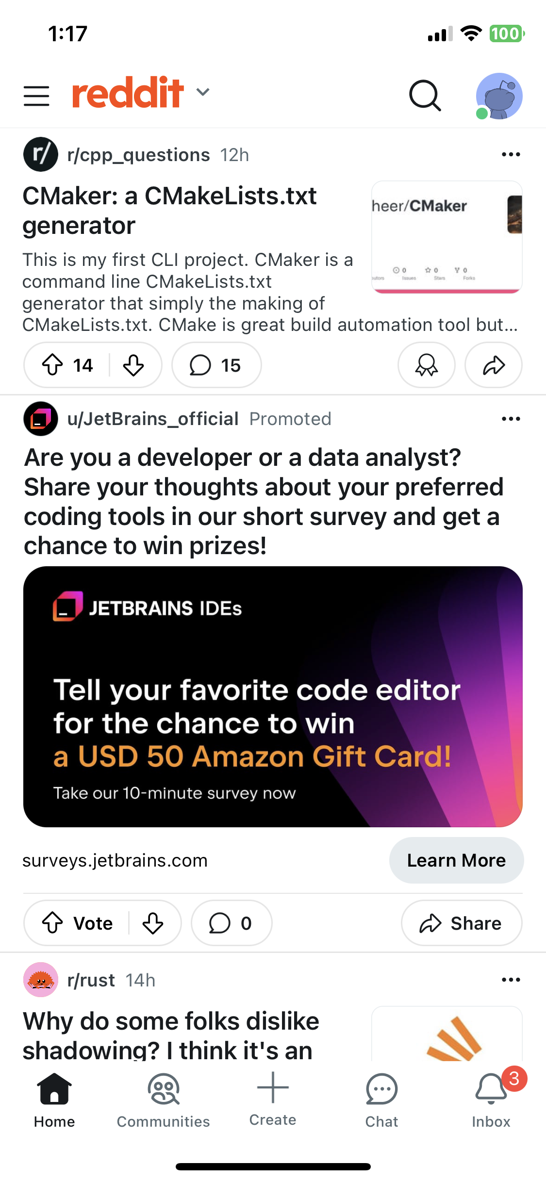 흔한 Reddit의 Feed 디자인이다.