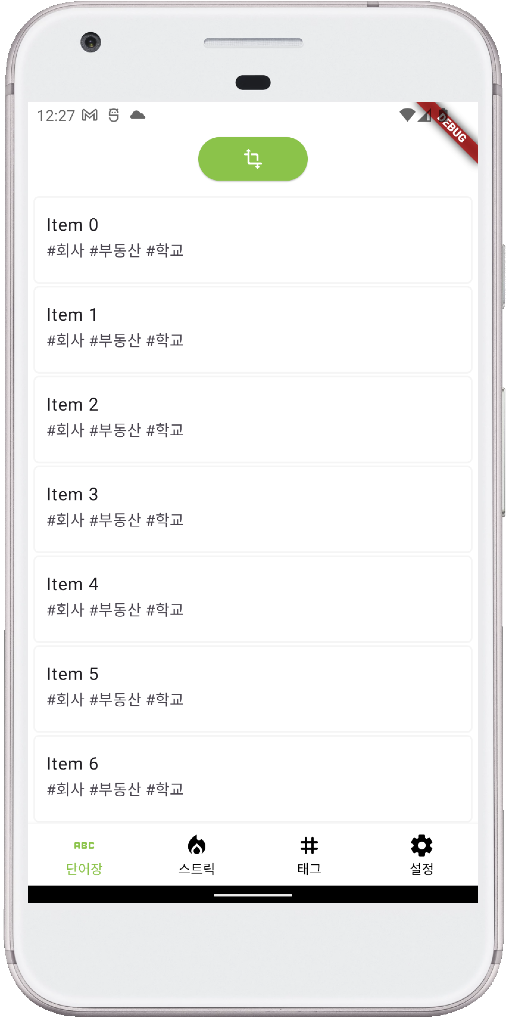 단어를 리스트 형식으로 볼 수 있도록 만들었다. 아직 제대로된 리스트 디자인은 아니지만 대략적으로 단어, 뜻, 예문, 태그 형식으로 저장할 것이다.