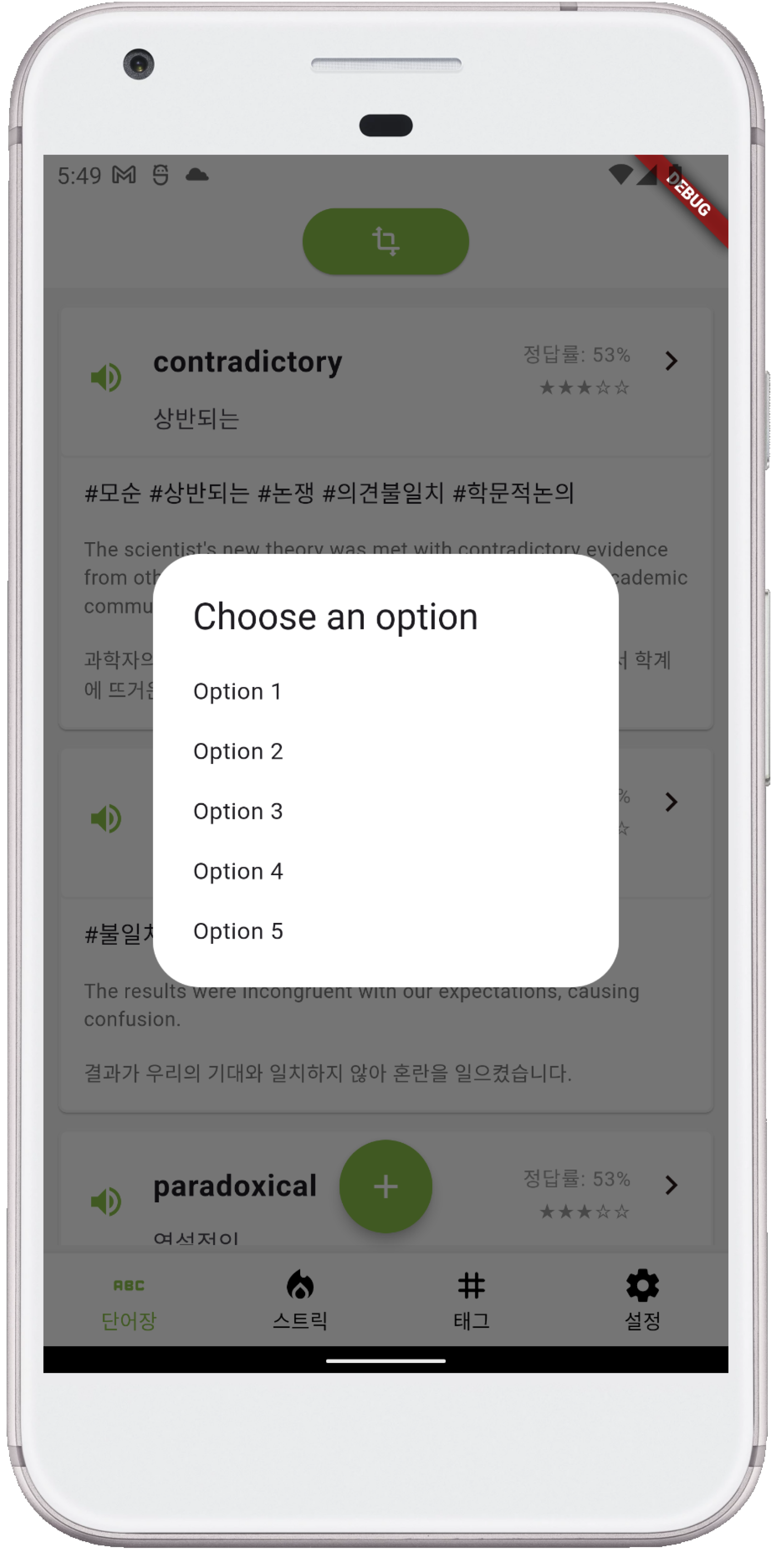 사용자가 선택할 수 있는 옵션을 목록 형태로 제공하는 다이얼로그다. 일반적으로 제목(title)과 여러 개의 선택 항목(children)으로 구성된다.