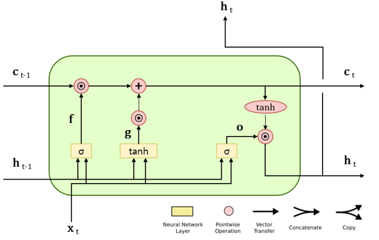 $$ c_t = f_t \circ c_{t-1} + g_i \circ i_i$$