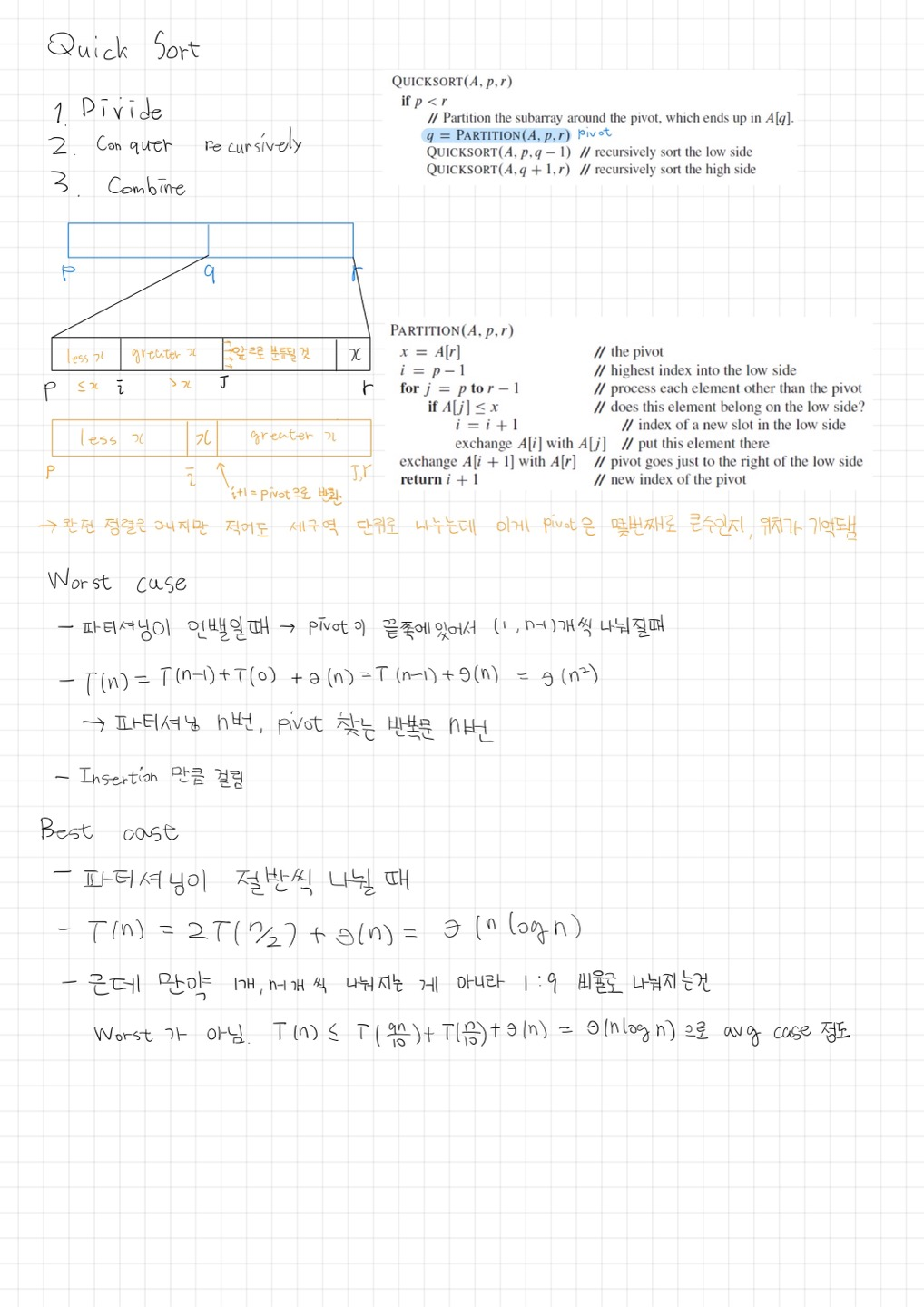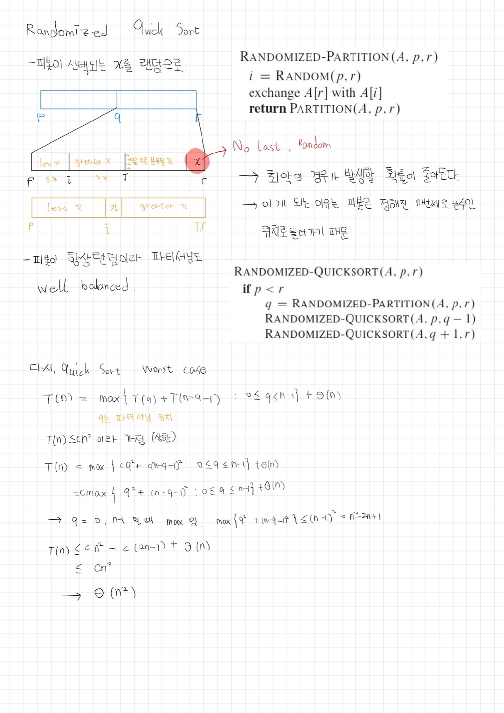 [Algorithm::Sort] Quick Sort (with Randomized) 시험 요약 본문