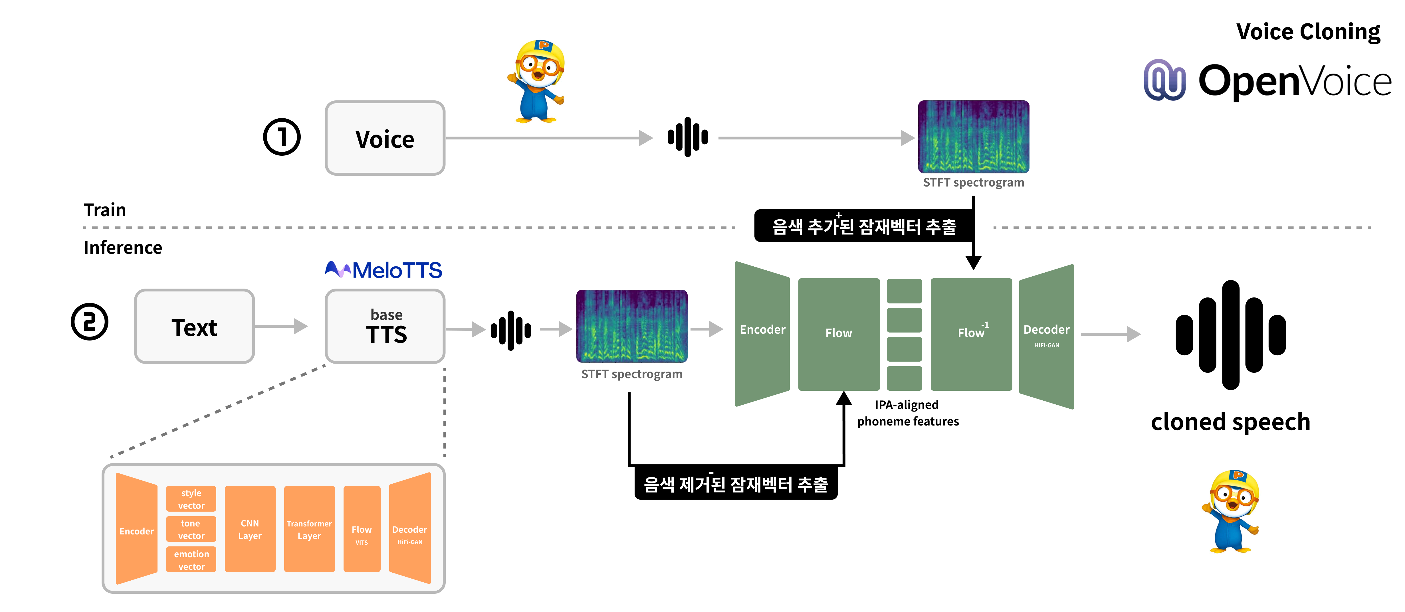 학교 캡스톤 디자인 중 OpenVoice를 쓰다가 아키텍처를 일반인도 보기 쉽게 바꿔보았다.. 논문은 자세히 안읽어서 알맞은 정보인지는 모른다. 아까워서 블로그에 저장