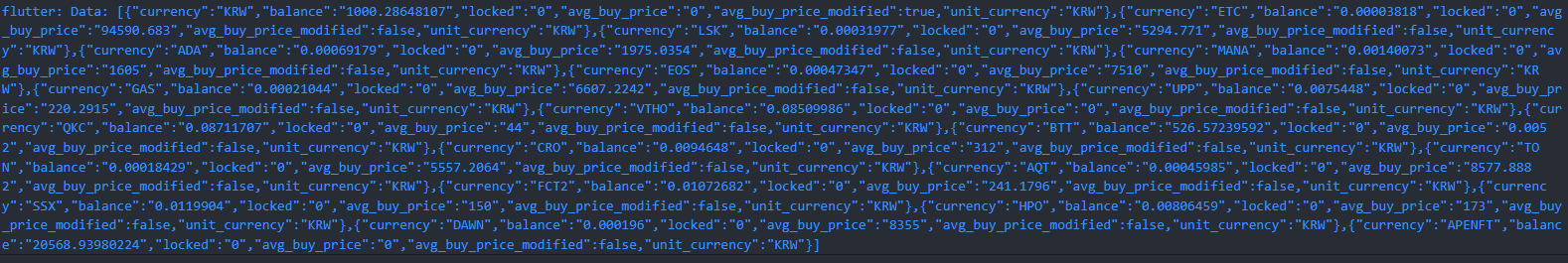 플러터로 윈도우앱을 만들어 비트코인 자동매매를 만들고 싶은데 업비트 api의 가이드북은 다른 언어로 한정되어 있어서 gpt로 코드를 만들어보았다.