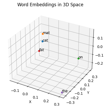 model = Word2Vec(sentences=corpus, vector_size=3, window=1, min_count=1, sg=0, epochs=1000)