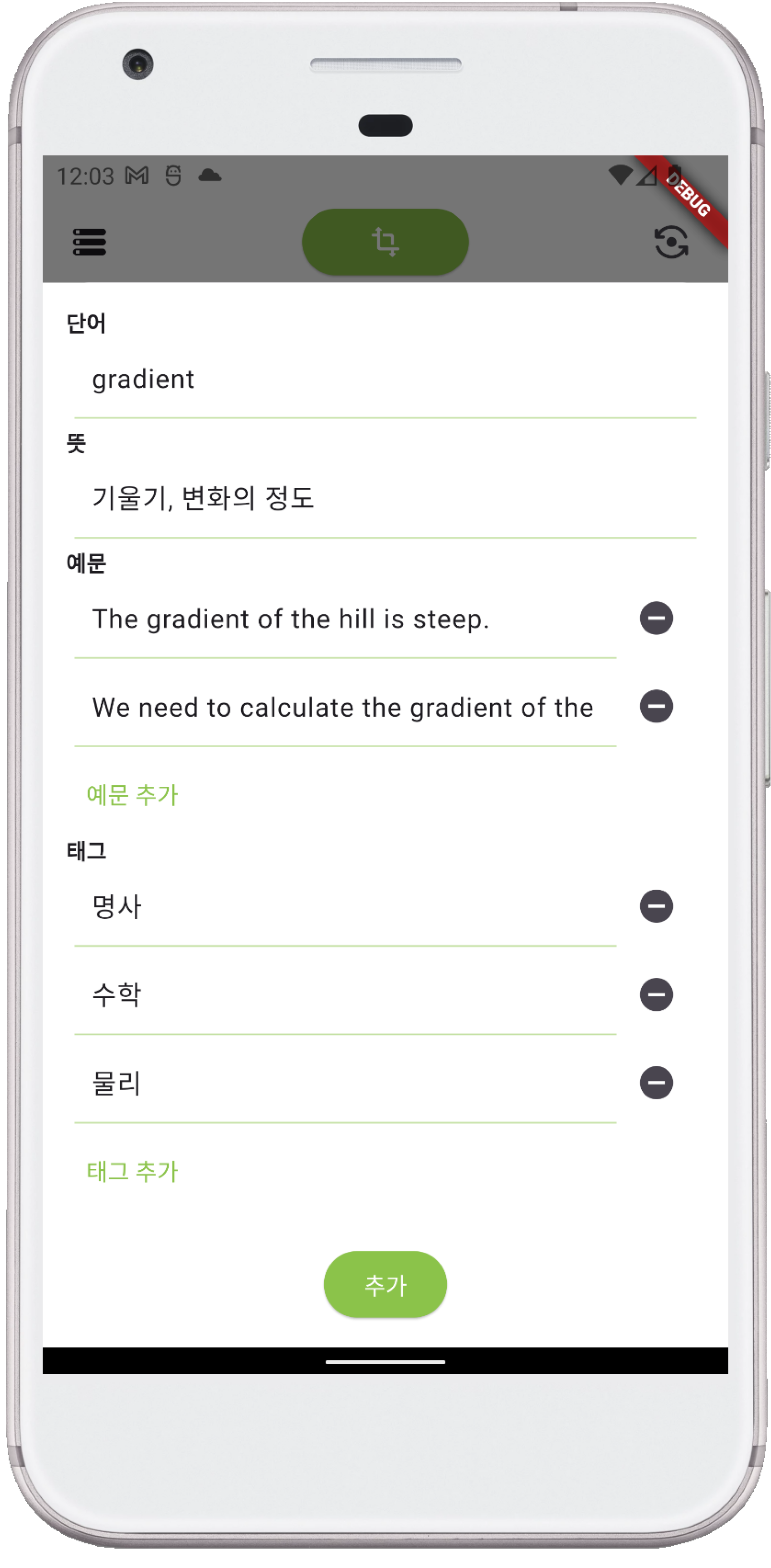 예문을 추가해주는 버튼을 바로 아래에 추가해주었다. 태그도 마찬가지이니 생략하겠다.
