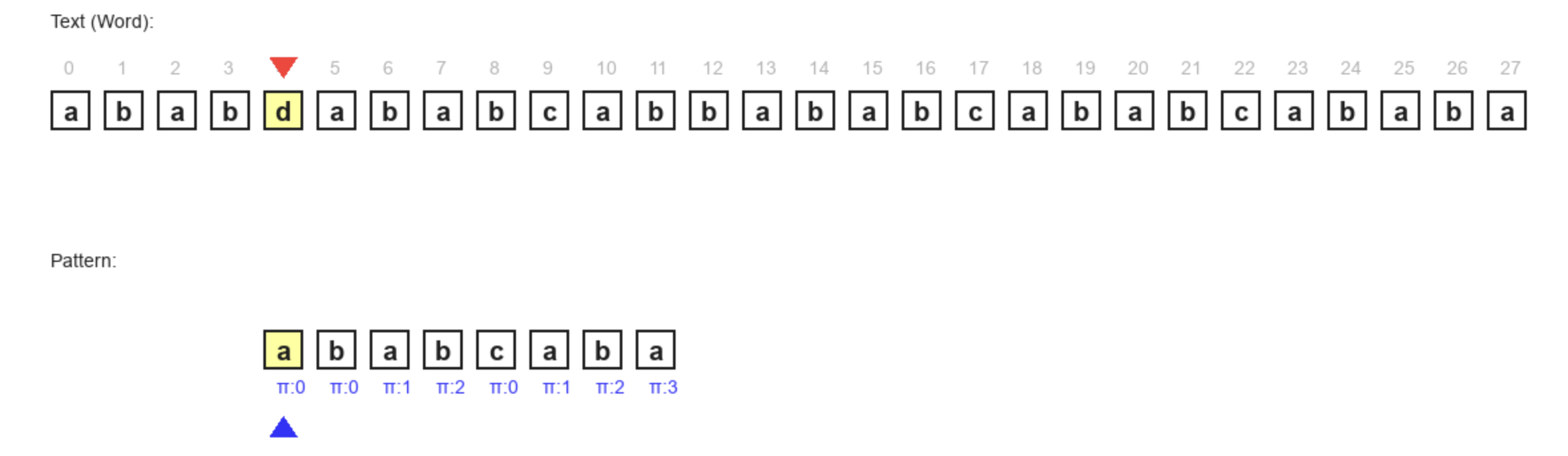 visualizer = KMPSearchVisualizer(text_val, pat_val)